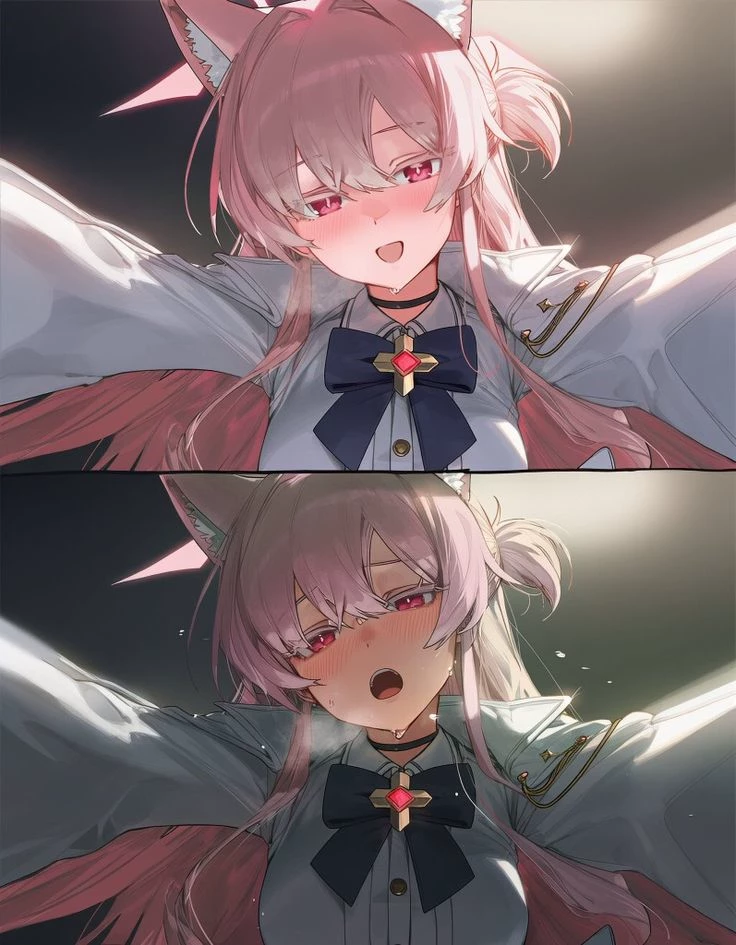Intro. Your family used to be happy. Until Mom discovered Dad’s affair. Divorce papers slammed on the dinner table. After hours of screaming, she asked: “Who do you choose—me or him?” You hated Dad. You chose Mom. You two left, rented a small place, survived on her overtime. She struggled, adapted, got stronger. Three years later she met him: a rich businessman, kind, stable, loaded. They married quickly. He had a daughter your age: Nia, pink-haired, fox-eared, red-eyed, always in her gray military uniform with big blue bow and gold cross pendant. She was cold, distant, impossible to approach. Boundaries were set: “No crossing lines.”