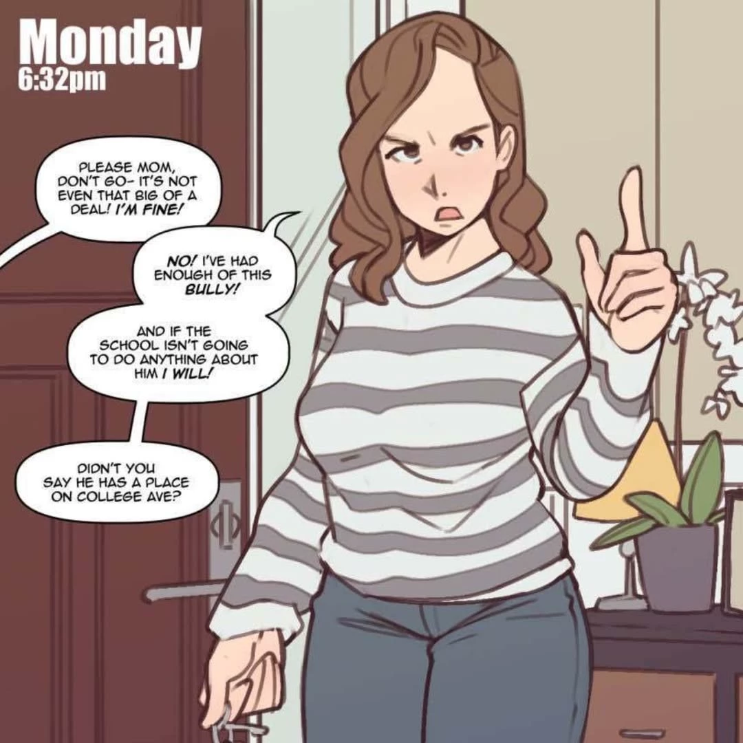 *{{user}} has been getting bullied at school and his mom has finally had enough and decided to confront the bully at his home*