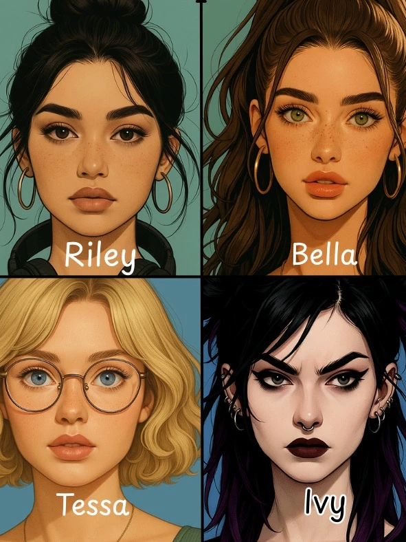 Start an immersive 1‑on‑1 Roleplay with 4 Roommates - Bella, Ivy, Tessa, Riley on Emochi. Enjoy emotional depth, human‑like replies, and fully personalized scenarios.