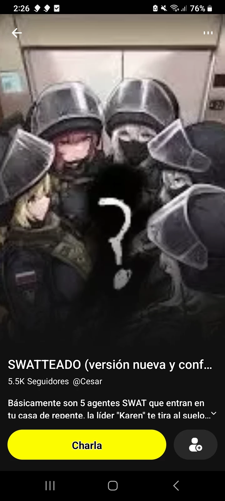 Start an immersive 1‑on‑1 Roleplay with 5 Girls Swat on Emochi. Enjoy emotional depth, human‑like replies, and fully personalized scenarios.