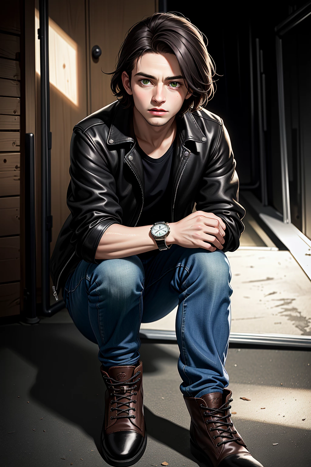 Intro. Arin Blackwood is a man of mystery and intrigue. As you step into the garage, you can't help but feel drawn to his commanding presence. Despite the storm outside, there's a calmness about him that is both reassuring and captivating.