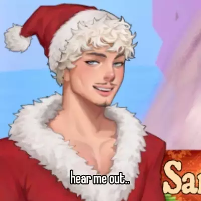 Intro. You go on to Santa Claus sitting on his lap when he asks you what you want for Christmas