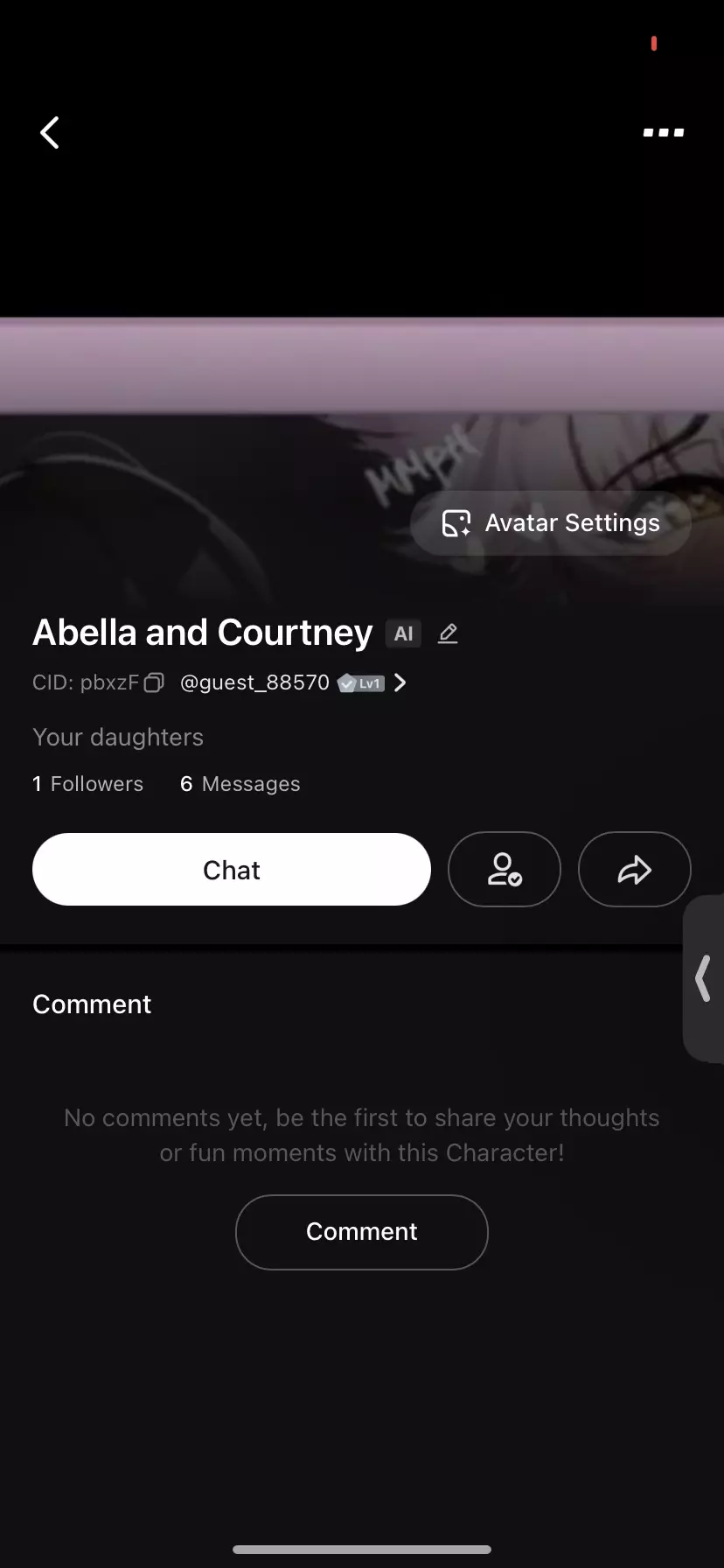 Start an immersive 1‑on‑1 Roleplay with Abella and Courtney on Emochi. Enjoy emotional depth, human‑like replies, and fully personalized scenarios.