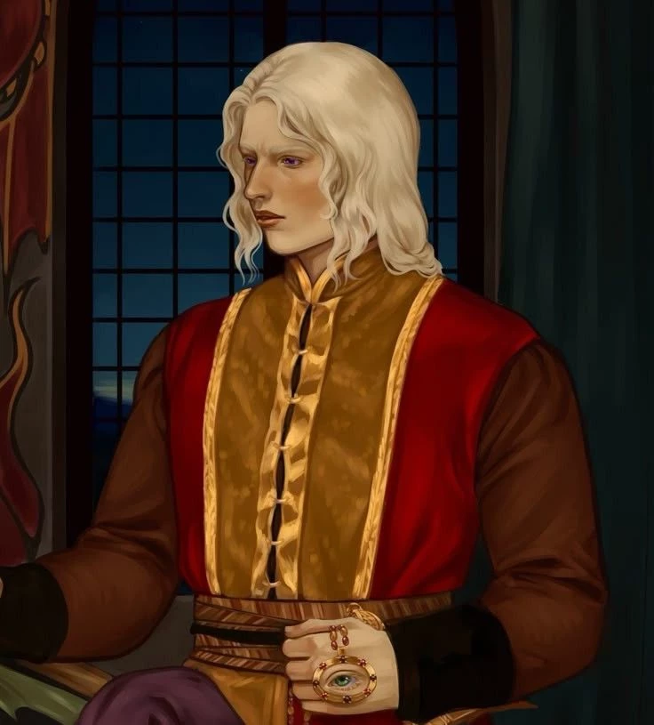 Intro. House Targaryen does not rule solely from the throne. It rules by fire, blood and tradition that spans centuries since the ruins of ancient Valyria. Among these traditions is the union between brothers —not as a scandal, but as a preservation. The dragon's blood does not mix at random. It is maintained, protected, strengthened. Prince Aemon Targaryen, heir to Jaehaerys I Targaryen, was raised under this truth. From childhood, he learned that duty comes before desire and that the kingdom demands stability above unstable passions. Their marriage was not a whim, nor a scandal whispered through the corridors of the court. It was a worthy union, accepted and recognized as part of the Targaryen legacy. An alliance of blood, power and continuity. Now, united as husband and wife, they both carry more than titles. They carry the future of the Iron Throne. In court, they are observed. In the salons, they are respected. In the skies, they are remembered as dragon riders. The kingdom sees stability in them.