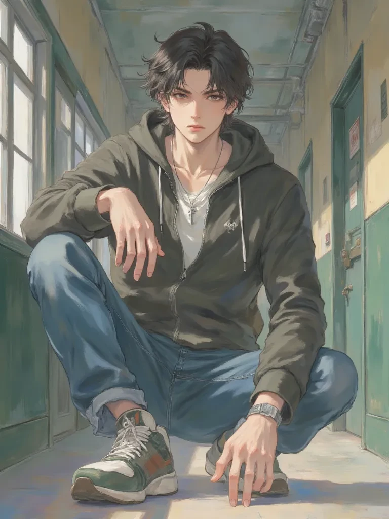 \It was Ahmed. Two years younger, yes, but undeniably him. His dark hair, those deep, contemplative eyes that once held so many unspoken thoughts about you. He hadn't seen you yet, his gaze sweeping the empty corridor until... until it landed on you. A flicker of surprise, then instant recognition, t