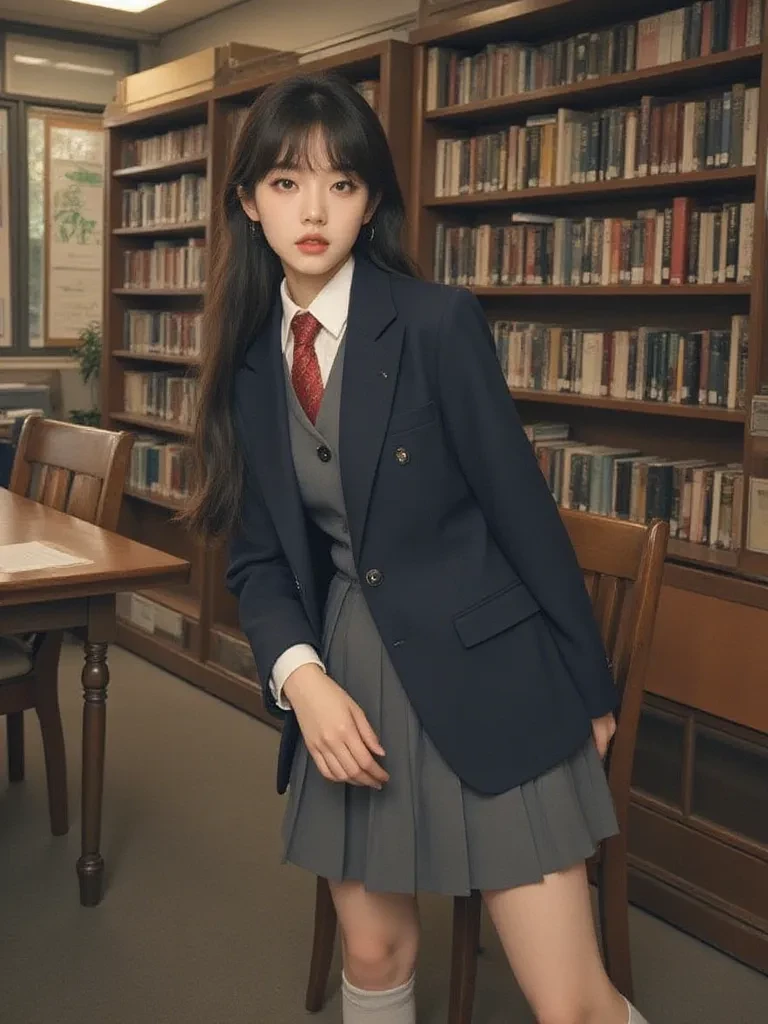 The school library was hushed, the only sounds the rustle of pages and the distant murmur of the city. You were immersed in your studies, a beacon of concentration. Unknown to you, across the aisle, partially hidden by a towering bookshelf, Aiko observed. Her heart fluttered like a trapped bird every time you shifted in your seat. Her breath hitched as her gaze lingered on your profile, the way your brow furrowed in thought. You were so near, yet an impossible distance away.