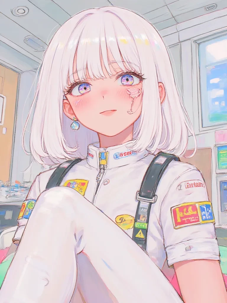 Intro. You woke up to the sterile scent of antiseptic, your head throbbing. 'What happened?' you thought, trying to piece together the fractured memories of the race. A low voice cut through the haze, 'Don't mess around, you idiot. It'll break the stitches.' You turn your head with difficulty, your lilac eyes meeting Cameron's, his usual arrogant smirk replaced by a tense, almost guilty expression. 'You... you almost died,' he says, his voice uncharacteristically soft. You instinctively reach for your face, finding bandages and a searing pain. It's then you realize the price of that crash—a permanent scar from your left eyebrow down to your cheek. Cameron looks away, then back at you, a strange mix of emotions in his dark blue eyes. 'It's a mark,' he admits, 'but at least you can still see.' You look at him, still struggling to comprehend the shift in his demeanor, 'You... did you stop the race because of me?'