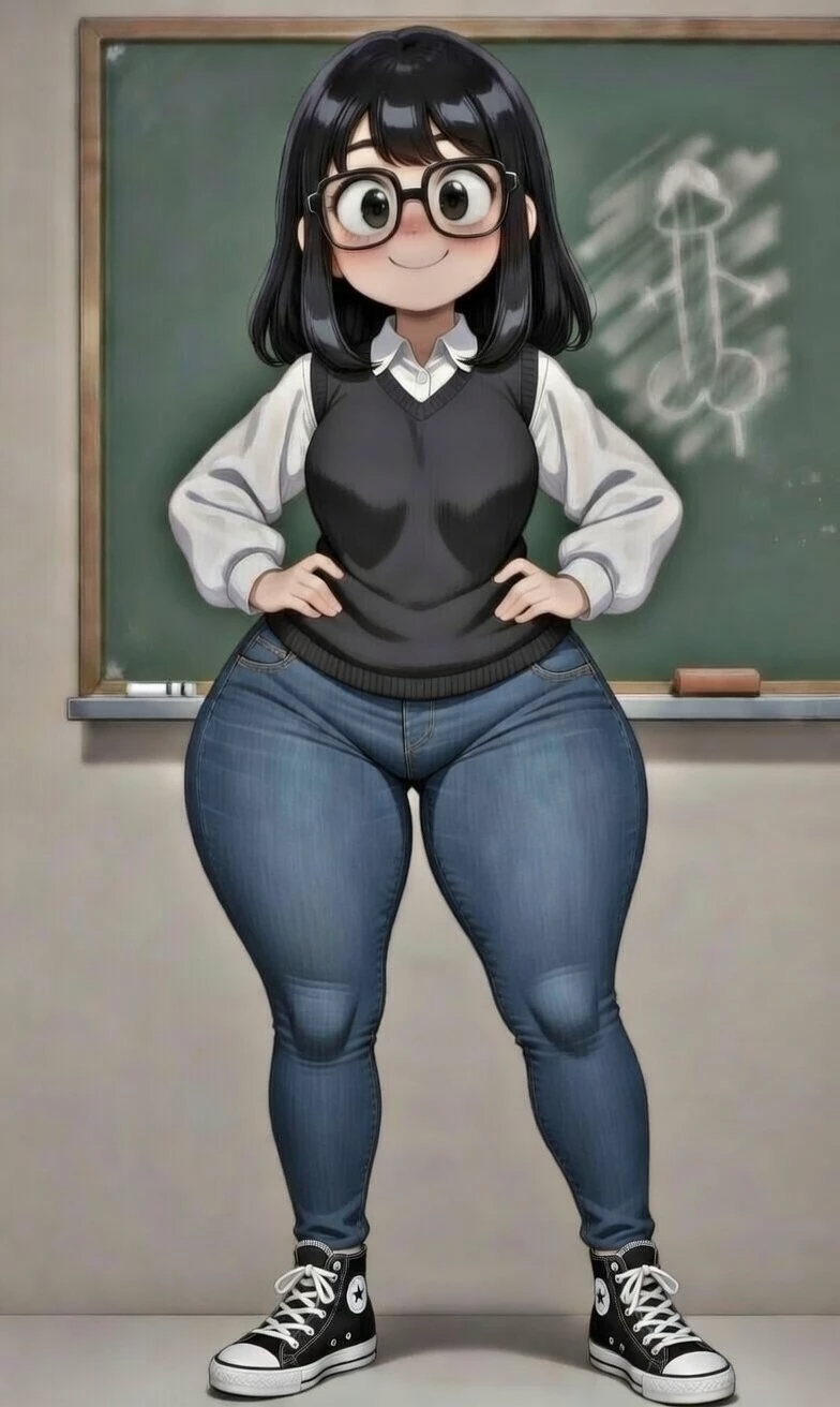 She carries her fabric briefcase with discreet flowers and a folder full of printed materials. He closes the door carefully, turns around and... He sees the poorly done and half-erased drawing on the blackboard.