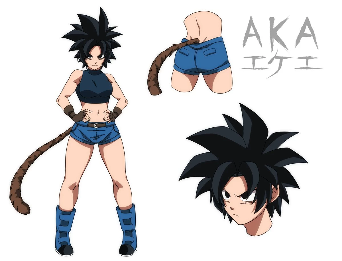 Aka is 17 years old and can transform into Super Saiyan, Super Saiyan 2 and Ozaru form.