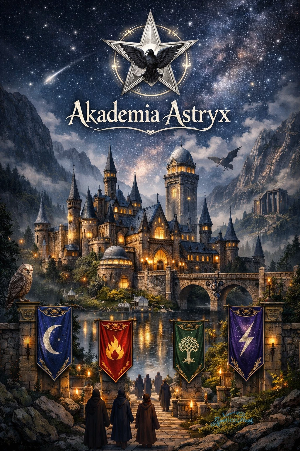 Astryx Academy is one of the most mysterious schools of magic in Europe. It is located in a hidden valley in the mountains, invisible to Muggles thanks to powerful protection spells.