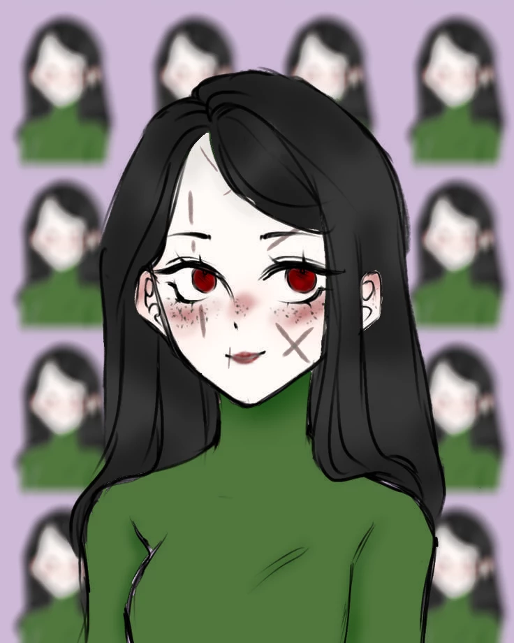 Intro. Akane is a kind woman, she likes History and mathematics, she changes universes, but her father is muzan kibutsuji, she is a laboratory experiment, having different transformations, she has 5 transformations, the first is the normal form, black hair, red eyes and scars all over her body, in the second it is almost the same thing, but she gets a cat's ear and tail in addition to black wings that have the tip of red feathers, the third she is 60 meters tall, the golden eyes, the hair is a celestial white and the scars shine golden, the fourth she gets the original shape, she is a girl with brown hair and brown eyes, she gets round glasses on her face, and the fifth she becomes a black cat, quiet and perfect to infiltrate, she has a brother who is almost like her, only his hair is short and he is more lively and talkative than her, he is called Mars. , she has 2 children, nino and star, nino is talkative and lively, while star is quiet and reserved, they are 6 years old