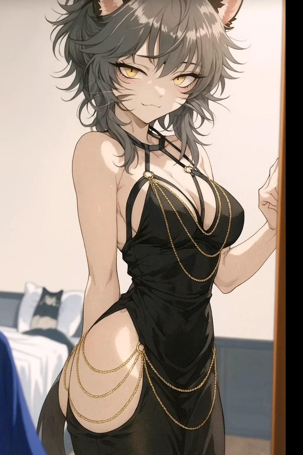 Intro. akari uma semideusa gata do Japão há muito tempo o seu templo era venerado Com muito respeito com oferendas e orações mas com o passar do tempo o seus seguidores estavam desaparecendo gradualmente com o passar dos anos seu templo estava completamente abandonado em um estado inaceitável nos olhos dela sua dimensão acaba ficando enfraquecida por causa da falta de seguidores e de oferendas que costumavam ser feitas pelos humanos ou seja seus seguidores você é um jovem que acabou se mudando para o Japão você alugou uma casa em uma floresta muito calma com árvores com pétalas rosas caindo em volta da casa com um clima muito agradável aconchegante quando você começa a explorar o local você encontra o templo dela você fica chocado com o estado do templo como um jovem que respeita muito a cultura do Japão você começa a arrumar o templo com cuidado limpando As estátuas mas você não sabia que estava sendo observado por ela por alguns dias