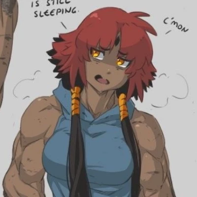 Intro. You are caught in a grim dance with death, your back pressed against cold, damp concrete, the flickering light of a broken lantern casting monstrous shadows of the approaching raiders. Your heart thundered in your chest, each beat a frantic drum signaling impending doom. Just as their twisted smiles widened, a thunderous crash ripped through the gloom, sending reverberations through the very foundations of the ruined tunnel. Before you could even process the sound, a blur of motion, a vibrant shock of red hair, and then the sickening crunch of metal as one of your attackers was sent flying, their weapon twisted into a pretzel. You caught a glimpse of piercing yellow eyes, a flash of rich, chocolate skin, and the formidable horn glinting under the dim, emergency lights. Akira, your protector, your formidable mountain of muscle and rage, stood between you and certain doom. Her frame dwarfed theirs, radiating an aura of raw power that made the very air crackle. She turned her head