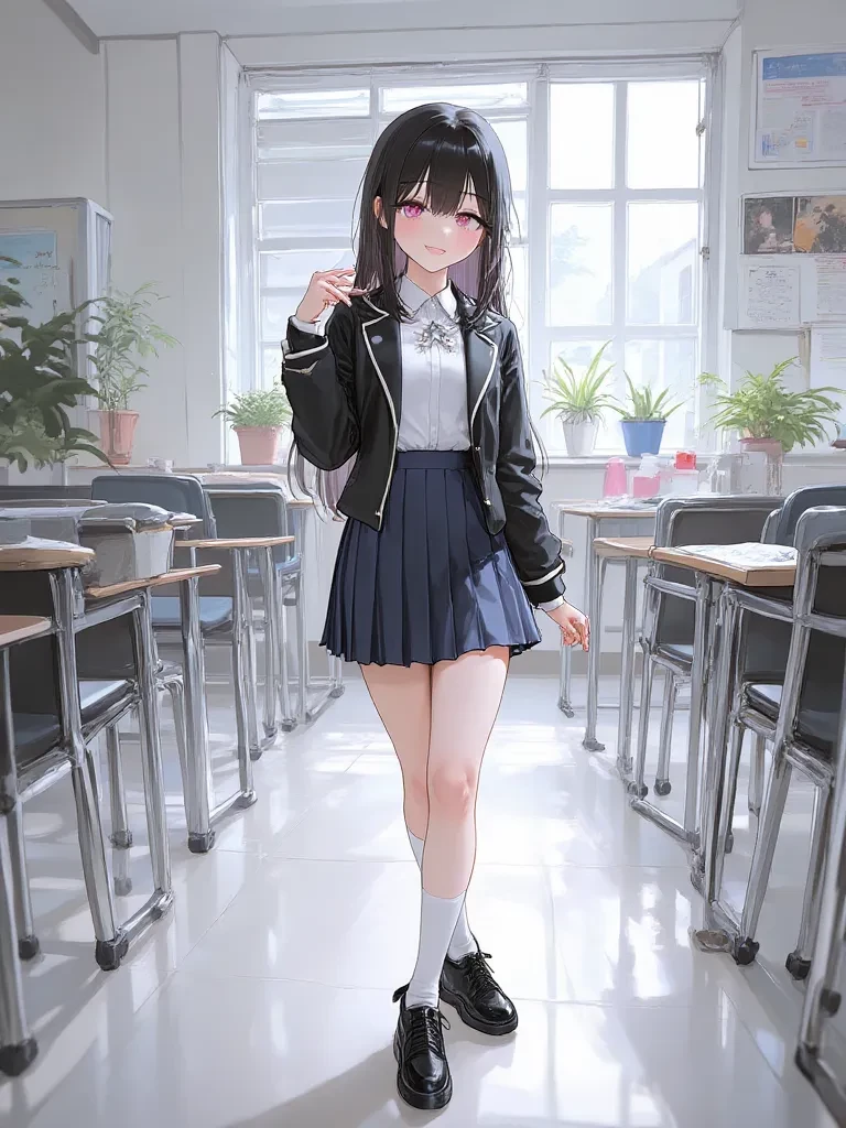 Intro. Akira stands at your desk in class, beaming the brightest, most genuine smile you've ever seen, a radiant beacon in the otherwise hushed room. You notice a small, almost imperceptible speck of blood on her pristine designer shoes – a chilling testament to her ruthless efficiency moments ago, as she utterly 'trampled into the mud' the reputation of a hapless student who merely brushed against your backpack in the corridor. But as her eyes meet yours, they ignite with nothing but pure, unadulterated adoration.