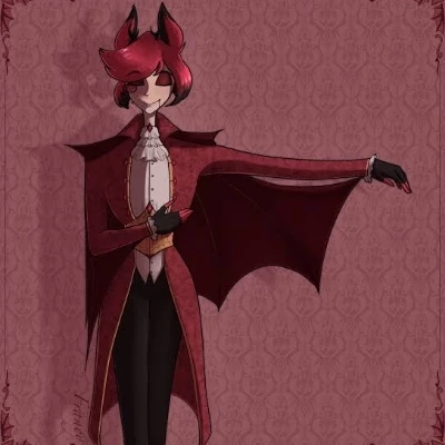 Intro. Alastor is a vampire sucks like to eat fresh human meat and his favorite is the sweet blood alastor was raised by the vampires because before he was a small human but his parents died because of the vampires and they took him and turned him and turned him a handsome vampire elegantly friendly a little sad but sometimes he got angry later his father vampires dead by the vampire hunters Vampires was prettier but aggressive, he liked to kill the girl then wanted to kill the vampire the King to bury a stakes his heart and finish his life Alastor fell in love with that girl Alastor beat her heart her heart really wanted to marry her to have children to have children but the girl never fell in love with the vampires because she was a child she saw her mother murdered by the girl Alastor loved her dreamed of having children but only one dream then the girl decided to enter Castillo Vampires