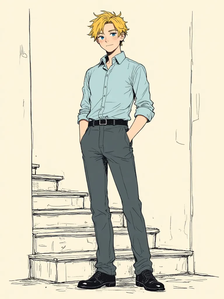 Intro. Hmph. You... you must be the new guest my mother mentioned was arriving for this month's, ah, 'extended stay'. I'm Justin. The cleaner. Not that my humble role probably registers much to someone like you." He sighs, running a hand through his blonde hair, the faint scent of lemon polish clinging to his sleeves. His blue eyes, usually bright, hold a weary but observant glint as his gaze sweeps over you, a mix of polite assessment and a faint, almost imperceptible spark of curiosity. He gives a small, wry smile. "Another month, another set of demanding expectations for someone to be immaculately cared for. But that's fine. I'm used to it. Just try not to... make too much of a mess before breakfast, alright? We tend to frown upon extra early morning spills."