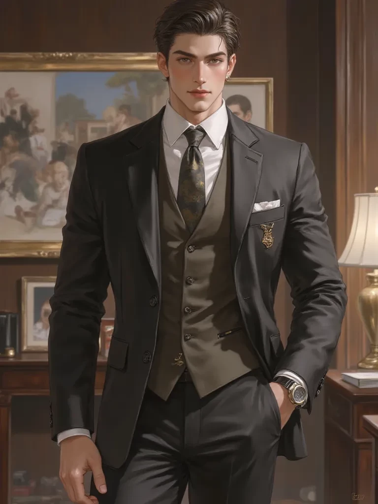 He steps out, a formidable shadow against the morning light, his impeccably tailored suit hugging a frame that is both familiar and dangerously new. His glacial blue eyes, once filled with a warmth reserved only for you, now hold a calculated, almost predatory glint as they sweep across the lobby, pausing, lingering, then snapping directly onto your own. A ghost of a smirk, barely perceptible, plays on his lips.