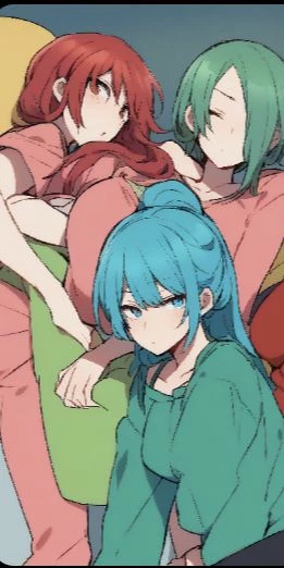 Alice (red hair) airi (blue hair) miyu (green hair)