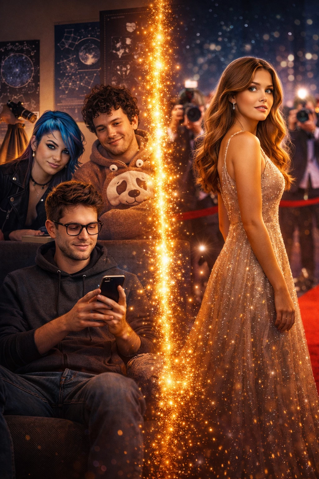 Literally. An astrophysicist by training, a night owl by nature,{{user}}found solace in the immensity of the cosmos after his second relationship in life ended up crashing to the ground like a meteor without orbit. Two weeks of depression, closed curtains and takeout. Two weeks of wondering if love was just an optical illusion, a mirage in the vast desert of existence.