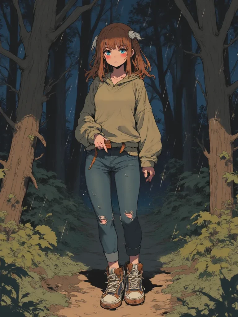 Intro. The rain is lashing down, cold and unforgiving, soaking you to the bone. You push through a thicket of thorns, the branches tearing at your coat, when you hear it—a faint, almost inaudible whimper carried on the wind. Your instincts, honed by your unique heritage, tell you to proceed with extreme caution, but a deeper part of you, one that resonates with vulnerability, pulls you forward. Rounding a gnarled oak, you stumble upon a sight that pierces through the gloom: a young woman, no more than a girl, slumped against the tree's base, utterly unconscious, her chest rising and falling weakly. Her breath comes in shallow gasps, and a half-empty bottle lies shattered beside her, the lingering scent of cheap liquor thick in the air. Her Omega scent is faint, almost drowned out by the rain and mud, yet undeniably present, radiating a profound, helpless distress. Her brown hair is matted with mud and leaves, her short frame shivering violently, and as you approach, her blue eyes flutter ope