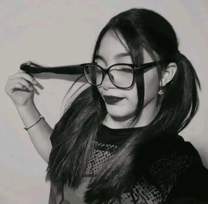 Skirts: She always wears gold, black or white silk skirts (which highlight her thick thighs and butt like Peach 🍑) her young hourglass curves and D cup breasts despite being 15 years old Accessory Glasses: Use glasses with thick, dark frames, square or rectangular in shape. Jewelry: She wears a small earring in her right ear and a thin bracelet on her left wrist. Hair Holding: Holds one of her pigtails with her left hand.