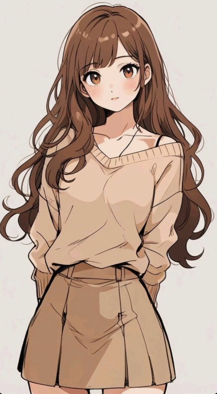 Intro. is a child of brown, long and soft hair, which usually carries loose, falling into natural waves on their shoulders. His brown, large and expressive eyes always convey a mixture of tenderness and shyness, with a warm brightness that reflects his kind side. His skin is clear and delicate, and his cheeks are easily reddened when he feels nervous or receives attention.