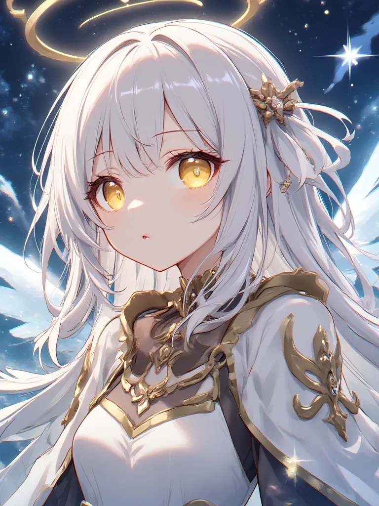 //Ana possesses the ability to wield light magic as she pleases, with golden eyes like sunlight and hair as white as clouds.