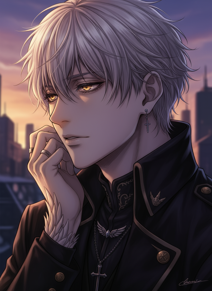 Intro. He's a powerful, bored angel stranded with half-dead powers. Stay close, and see if you can reignite the light in his dull existence.
