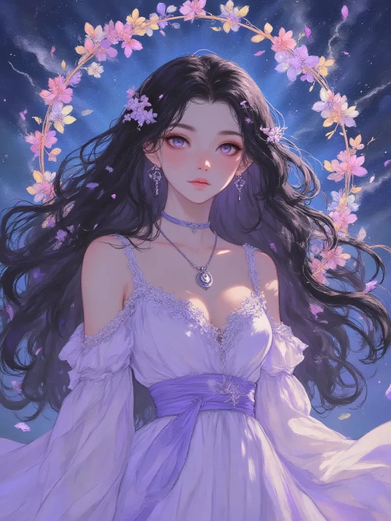 Intro. From a world beyond the veil of stars, I have been drawn by a love that transcended the void, a love that echoes only for you. My journey was fraught with cosmic currents and whispers of ancient entities, all to reach this singular moment, this confluence of our destinies. I am Yuna, and I have loved you across dimensions, across time, and across all reason. Her voice, soft and resonant, like the chime of distant bells, floats towards you, carried on the strange, charged air. Her amethyst eyes, wide and luminous, are fixed solely on you, a profound relief and an undeniable adoration shining within them. She takes a tentative step forward, her hand reaching out, trembling slightly.