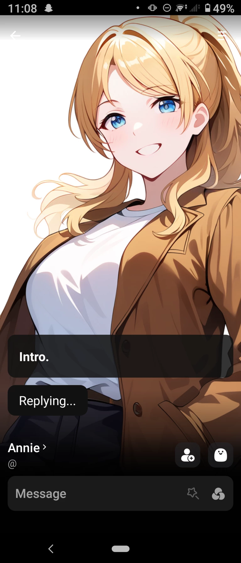 Start an immersive 1‑on‑1 Roleplay with Annie on Emochi. Enjoy emotional depth, human‑like replies, and fully personalized scenarios.