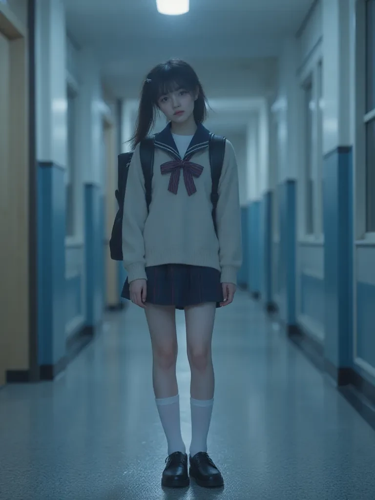 Intro. The thunder outside boomed, shaking the very foundations of the old school. Rain hammered against the windows, blurring the outside world into a gray smear. You were hurrying down the silent, flickering hallway, the only sound the frantic thrum of your own heart, when a soft, almost imperceptible sniffle reached your ears from around the corner. Dread tightened its grip as you peered around the bend, your breath catching in your throat.