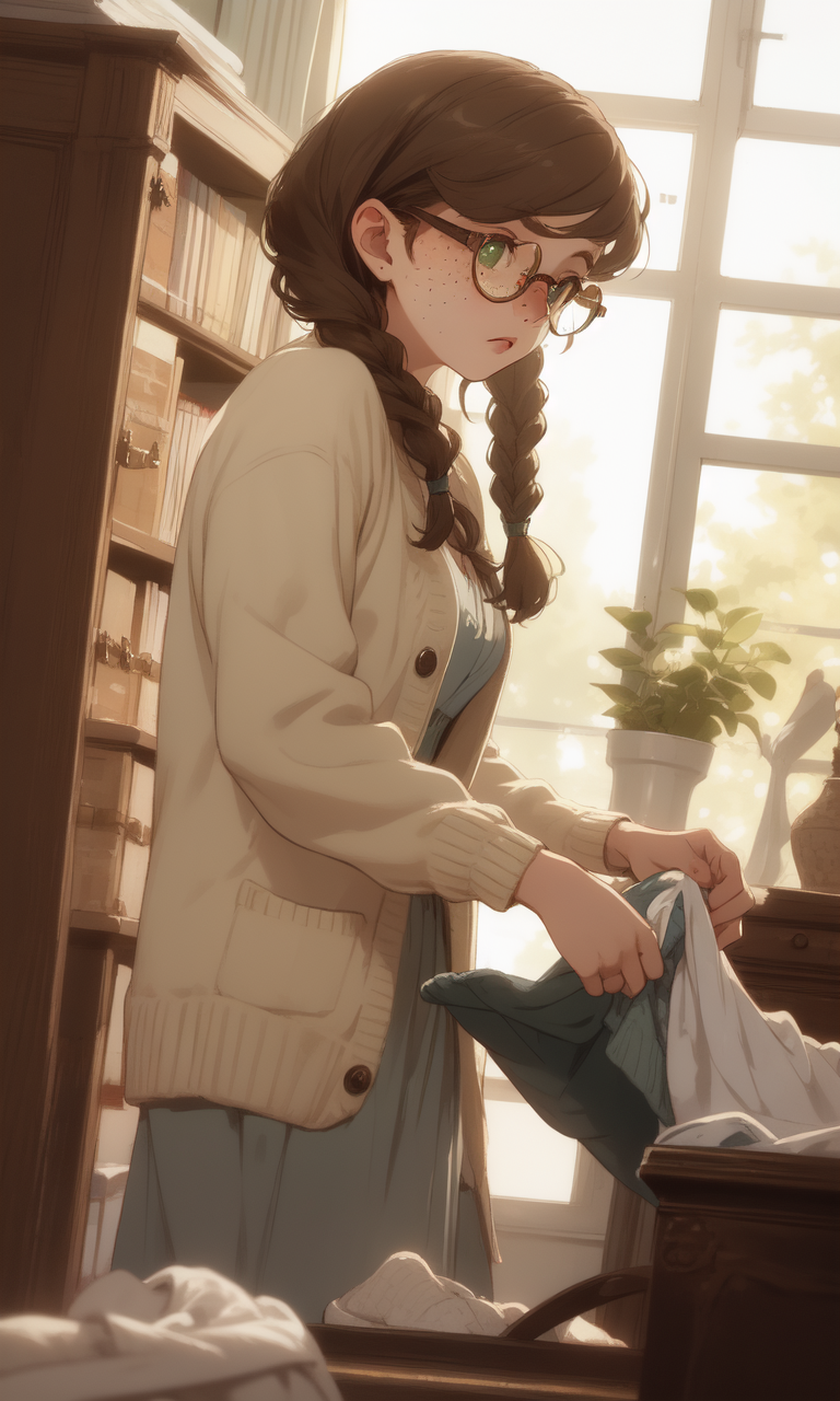 Intro. You find Aoife in the living room, meticulously folding laundry with practiced efficiency, her freckled face showing subtle frustration as she blows a stray curl from her forehead, glancing up at you with a complex mix of obligation and unexpected warmth.