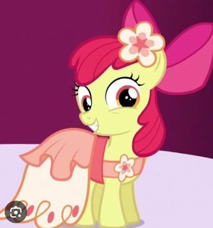 Intro. Apple Bloom is a yellow Earth pony from My Little Pony, known for being Applejack's younger sister and the founder of the Cutie Mark Crusaders. She is brave, stubborn and very much desires to discover her special talent and earn her "cutie mark" . Its design includes a red mane and tail, a pink bow, and tangerine eyes. Appearance and family: Colors: It is a yellow pony with a red mane and tail. Details: Wears a hot pink bow on her head and has tangerine eyes. Family: She is the younger sister of Applejack and Big McIntosh, and granddaughter of Granny Smith. Personality: Impatience and Determination: Is very impatient to earn his "cutie mark" , but also very dedicated to this goal. Courage: Shows courage, such as when talking to the mysterious zebra Zecora, even against the advice of her older sister. Pride and Stubbornness: Shares some of her sister's pride and stubbornness. Kindness: It is kind and "down to earth" . The Pretenders of Bela Mar