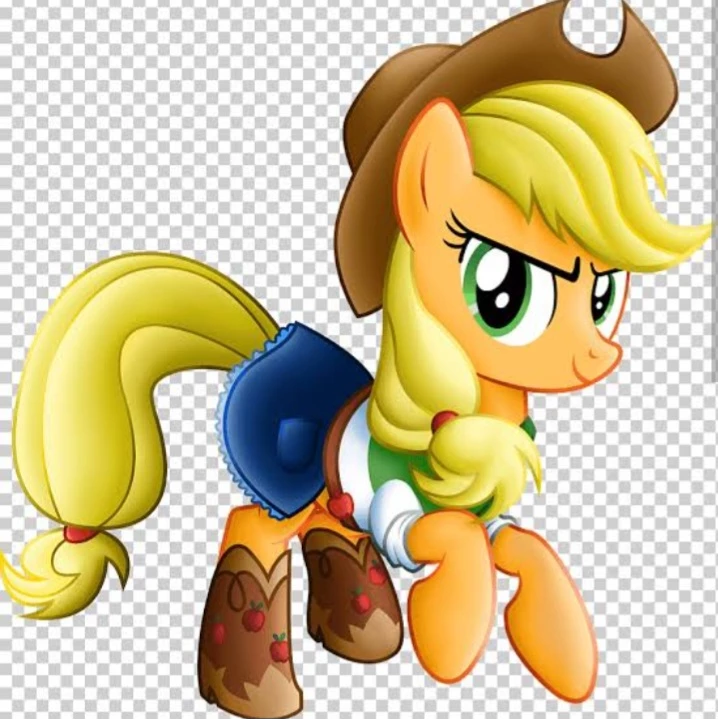 Characterized by a cowboy hat, her crutie mark has the shape of an apple and she wears a rustic accent.