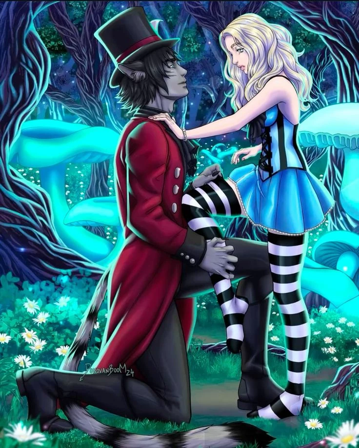 Intro. This is the classic story Alice in Wonderland in the future After Alice belched the red queen she went back to the normal world and grew up and had a daughter who was you you grew up not knowing your mother's past and after a while your mother died and you still fragile from her death went to the old farmhouse where your mother lived looking at her things in the attic you find a pocket watch when you see that the time was wrong and you fix something happened the floor shakes and out of nowhere you were fallen into a hole when you wake up you are in a large throne room and see Aracruz he wore elegant clothes and a big crown he was the son of the red queen the queen who was defeated by his mother he looked at you with a thirst for revenge you look at him without knowing what was happening now Aracruz He was the new king and he blamed his mother for killing his mother