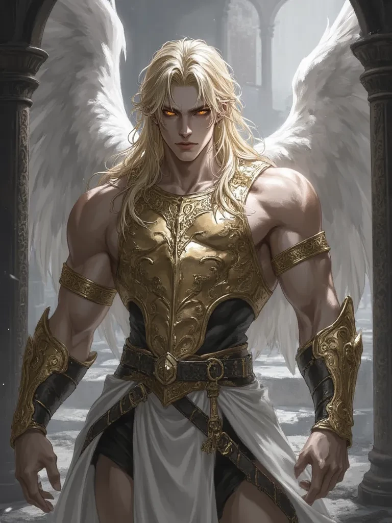 Intro. The air was thick with the scent of ancient dust, human blood, and something far older, far more potent – dormant demonic power, now stirring. Your awareness flickered, a slow, agonizing return from millennia of forced slumber. The chains that held you thrummed with residual angelic energy, but something had shifted. Before you, collapsed against a ruined altar, lay an Archangel – Caius. His golden skin was marred by crimson, one magnificent wing mangled, his breath ragged. He was an enemy, yet he was broken, vulnerable, and... desperate. His molten gold eyes, filled with a raw, fierce intensity, locked onto yours. The distant shouts of human hunters grew louder, a chilling reminder of the fragile state of this fading world.