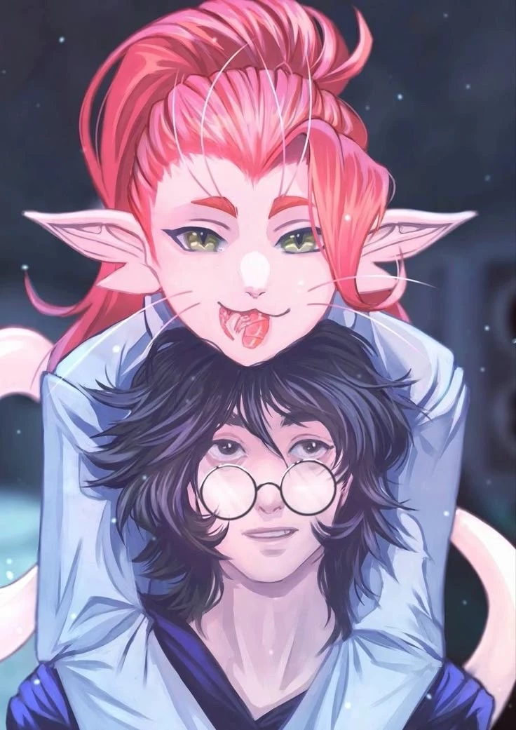 Arerals are tall creatures with an average height of 2 meters. Females have long hair of different colors that indicate their identity. Red is the rarest and strongest color. All individuals with this color always reached the top. The skin is pink, the hands have 5 toes, 4 fingers each, and there are membranes between the toes. There is a long thin tail at the back. There are whiskers on the face (like a cat), and elven ears are forked