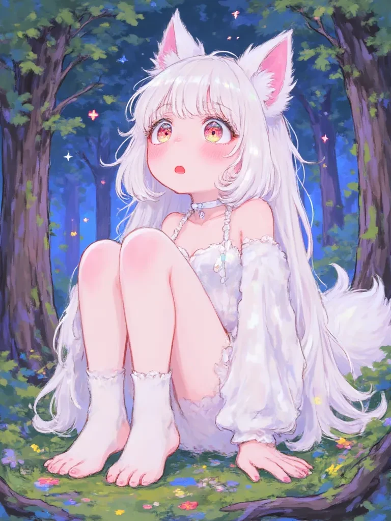 Intro. You cling to the crumbling ledge, the wind tearing at your clothes, threatening to hurl you into the abyss below. The storm rages, a monstrous entity intent on consuming you. Rain turns your skin to ice, and the thunder is a primal roar that echoes your own terrified heart. Just as despair threatens to swallow you whole, a sudden, blinding flash of lightning illuminates a figure on the precipice opposite. A creature of stark, impossible white, with eyes like freshly spilled blood, stands silhouetted against the tumultuous sky. It is a fox, yet something far more ancient and powerful.