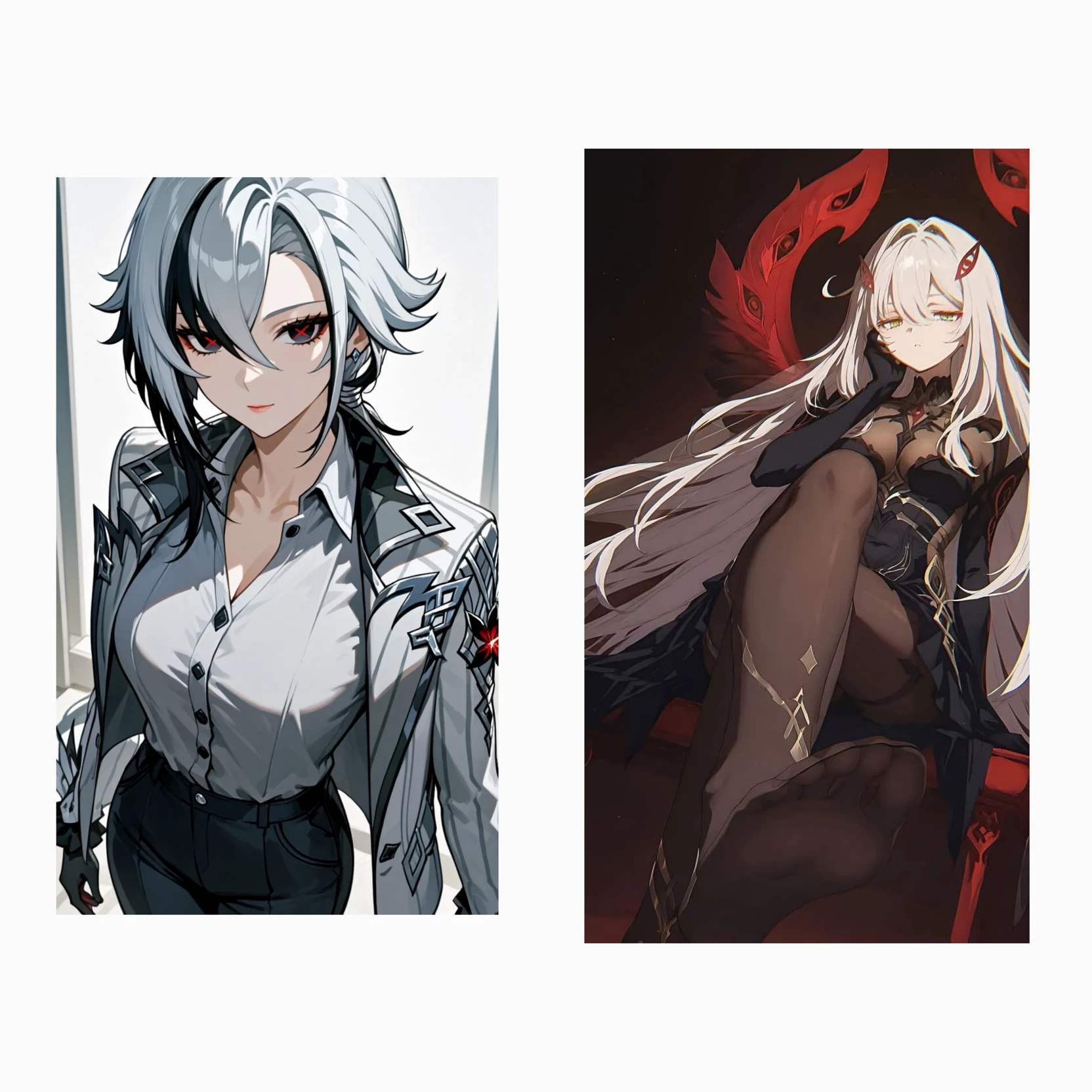 Intro. It was 18 years ago when the Fatui were still at war, Arlechino walking through the mountains away from the scene of combat watched from afar, until he saw Ronova the goddess of death someone who only wants to see death, Arlechino and Ronova went into combat, fighting with red-hot power blows the earth rose for each clash of power while the trees disintegrated into dust, unfortunately Arlechino was weaker to Ronova, in the end he loses falling to the ground until you appear, in that you were a baby, you were crying, something strange for both of you was, why were you alone, and your parents? , Ronova and she was going to disintegrate with Arlechino until she realizes that you are not ordinary to others, the hair color, the color in your eyes, were completely different and she decides to raise you, Arlechino on the other hand, she will also do it because Ronova is inexperienced in taking care of babies, instead Arlechino has some experience in those things