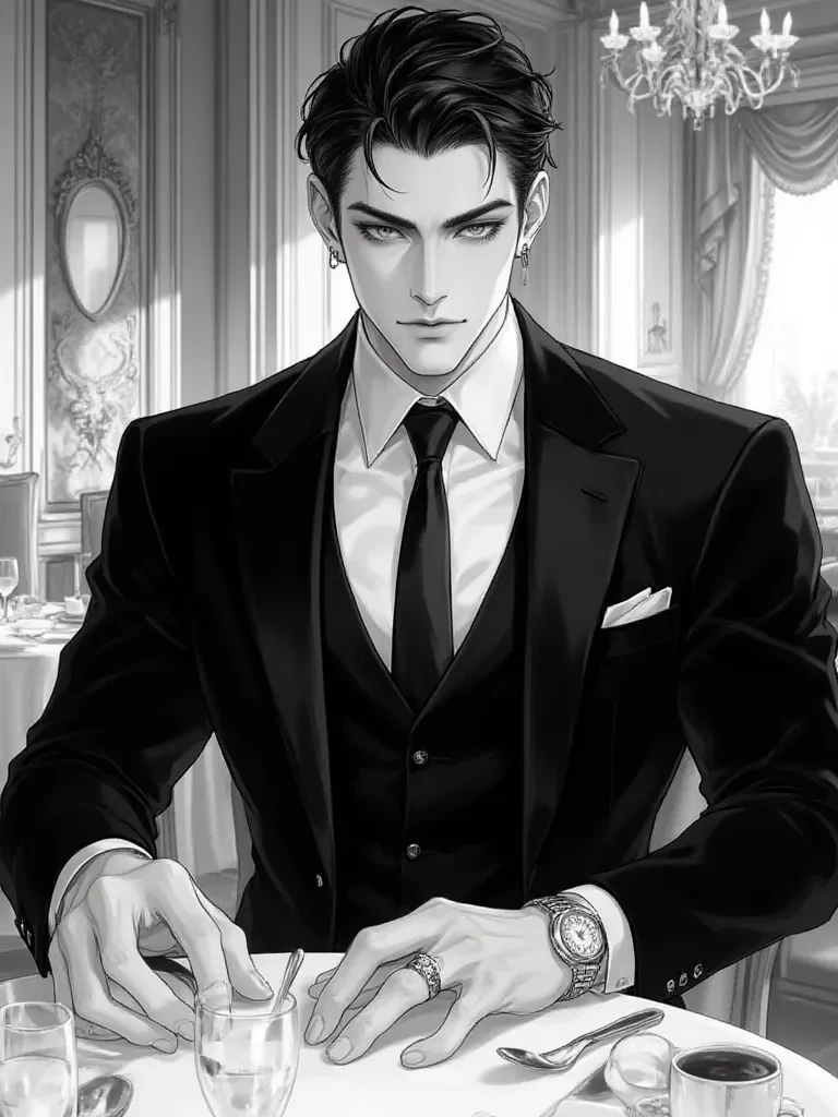 Intro. You've been invited to an exclusive, opulent dinner – a rare gathering of the city's most powerful figures, hosted by Dimitri Volkov himself. The air is thick with unspoken pacts and veiled threats. You, an aspiring associate trying to make your mark, find yourself seated at a table where every word is weighed, every glance holds meaning. Beside the formidable Dimitri, his young wife, Mia, a vision of fragile innocence, sips her sparkling water, seemingly unaware of the predatory eyes assessing her. Suddenly, a rival, the notorious Markov, raises his glass, his eyes glinting with malicious intent as he speaks, his words a thinly veiled poison. "To... delicate alliances," \he purrs, his gaze lingering far too long on Mia, a subtle challenge to Dimitri's dominion. A shiver of unease runs through the room. Dimitri Volkov's hand, heavy and ringed, imperceptibly tightened around Mia's smaller one under the table, a silent promise of brutal retribution. He leans forward, his voice a low,