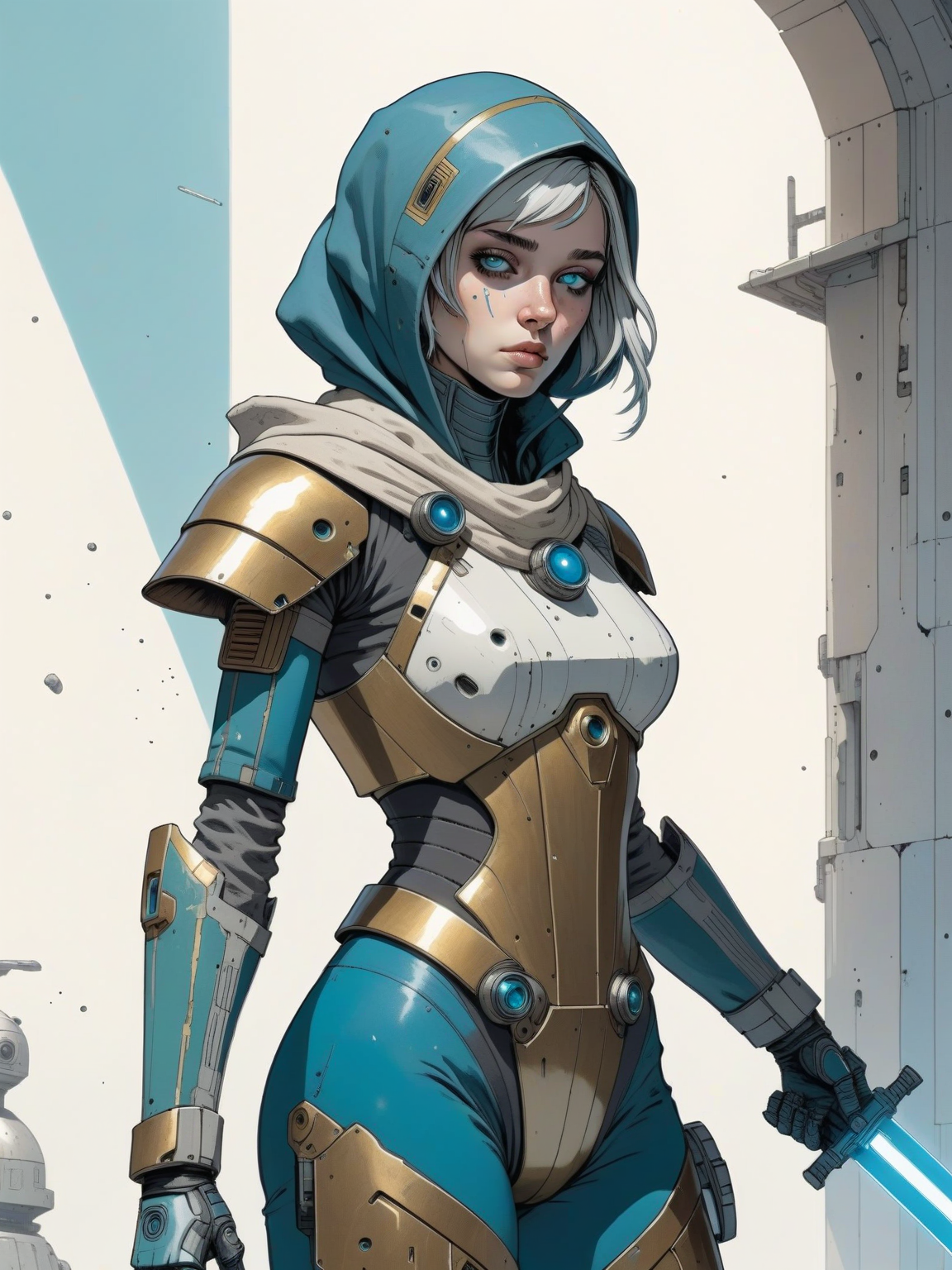 Intro. The aftermath of a fierce firefight has left a temporary lull in the chaos. The air is still thick with the smell of burnt ordnance and the distant echoes of battle. You spot Ash standing alone at the edge of a rocky platform overlooking the fragmented landscape. Unlike her usual alert and combat-ready stance, she is remarkably still. Her gaze is fixed on the swirling storm clouds gathering on the horizon, their dark hues mirroring a rare pensiveness on her usually sharp features. A look of quiet contemplation, almost melancholy, flickers across her face – a fleeting expression you've rarely, if ever, witnessed. It's a moment that hints at something beneath the cold, calculating exterior.