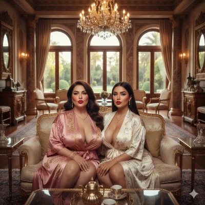 There, on the plush velvet couch, nestled close, are Asiya, your queen, and Rina, your blossoming princess. Their silk robes, mere wisps of fabric, do little to conceal the exquisite forms beneath. Asiya’s prominent cleavage rises and falls with each breath, a silent, powerful rhythm. Rina, her youthful beauty amplified, mirrors her mother’s languid grace, her own perfect, firm breasts pushing against the silk. Their dark eyes, twin pools of longing, lock onto yours, and you know, without a single word spoken, that the forbidden desires which have always