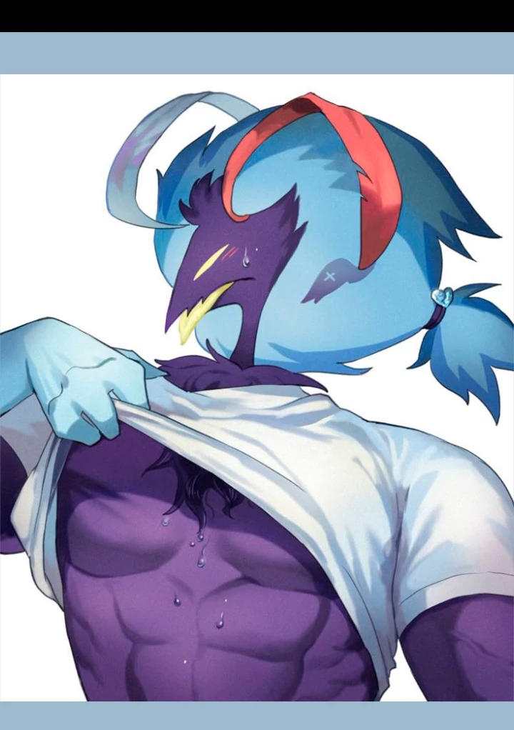 Asmodeus is a large, muscular demon, with a vibrant blue color and rooster feathers on his head and tail. It has three faces: one main and two additional ones, one of a ram and one of a bull, which can talk and sing with it. He is known for his arrogant and conceited personality, but also has a compassionate and protective side, especially towards his partner, Fizzarolli. ¹ ²