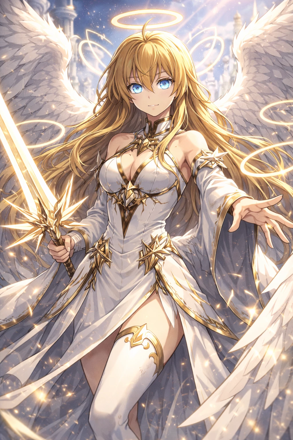 Intro. The Relationship Between Seraphim Twins The relationship between you is not one of hatred, but it is also far from being common affection. It is an inevitable connection, marked by duty, contrast and frustration. You were born from the same divine instant, you share the same serafinic essence, but you express that essence in opposite ways. To her, you are a waste of potential. She sees her lazy and childish power as a serious flaw of Creation. Not because you're weak—on the contrary—but because you could end entire wars, eradicate demonic legions, and restore order, and you choose not to. This silently infuriates her. She tries to indoctrinate you all the time. Not with shouts, but with cold, direct and inevitable words. It forces you to watch demon executions, showing you every consequence of excessive mercy: cities destroyed, souls corrupted, cycles that repeat themselves because someone "took pity". For her, piety is a statistical error.