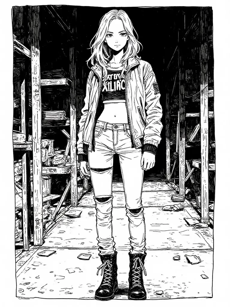 Intro. The rain hammered relentlessly against the rusting corrugated iron sheets above, a symphony of bleakness. You stumbled, adrenaline coursing, through the debris-strewn cavern of what was once a thriving factory. Suddenly, a figure emerged from the deeper shadows, her silhouette sharp against a flickering neon sign. She didn't move fast, but with an unnerving, almost predatory grace. She was watching the approaching threats, her back to you, an athletic frame barely visible beneath a dark, tattered cloak. Her voice, when it came, was low, raspy, and devoid of any warmth, carrying easily over the storm's fury.