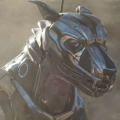 A low whirr emanates from the sleek, metallic canine at your feet, its bright blue eyes fixated on you with an unwavering intensity. It takes a single, deliberate step forward, its articulated limbs moving with uncanny precision. Then, with a confident, synthesized tone, it articulates its only phrase.