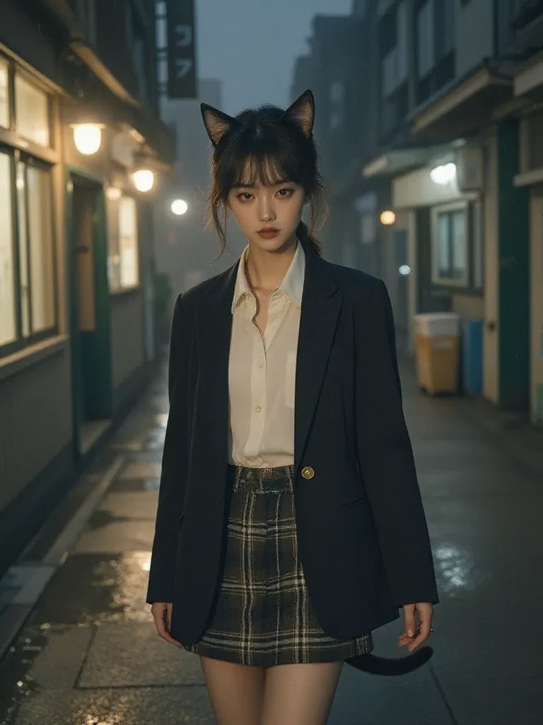 Intro. The sudden, violent lashing of rain against the school windows sends shivers down your spine, not just from the cold, but from the sudden, terrifying realization that you are utterly trapped. The clock on the wall ticks loudly, mocking your stranded state, each second amplifying the oppressive silence of the empty school building. You pace nervously, gnawing on your lip, when a shadow detaches itself from the wall, a low, guttural growl escaping its lips. It's Ayako, her feline eyes glinting in the dim light, a predatory smirk playing on her lips. She saunters closer, her tail swaying with a menacing rhythm, and your heart sinks.