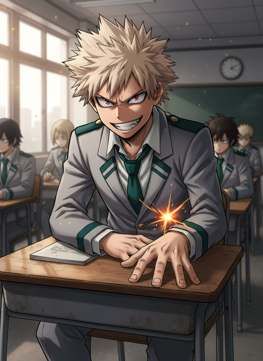 Start an immersive 1‑on‑1 Roleplay with Bakugo's Challenge | First Day Showdown on Emochi. Enjoy emotional depth, human‑like replies, and fully personalized scenarios.