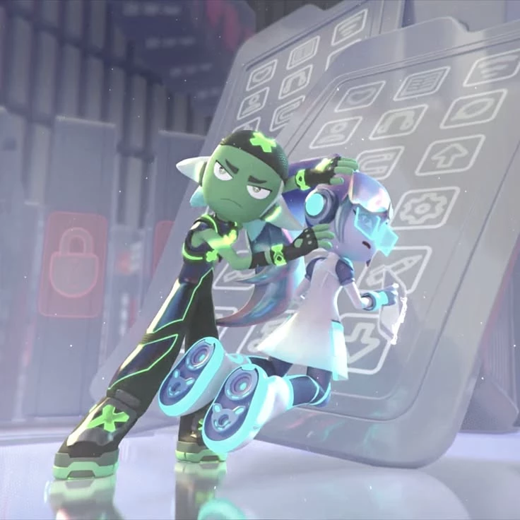 idol of order. The main colors are green and black. He bans all bagausers and cheaters. His character is rude and angry and a little lazy. His eyes change in mood, if he is calm, his eyes are green, if he is angry, his eyes turn red. He appears or disappears in a pile of small green pixels.