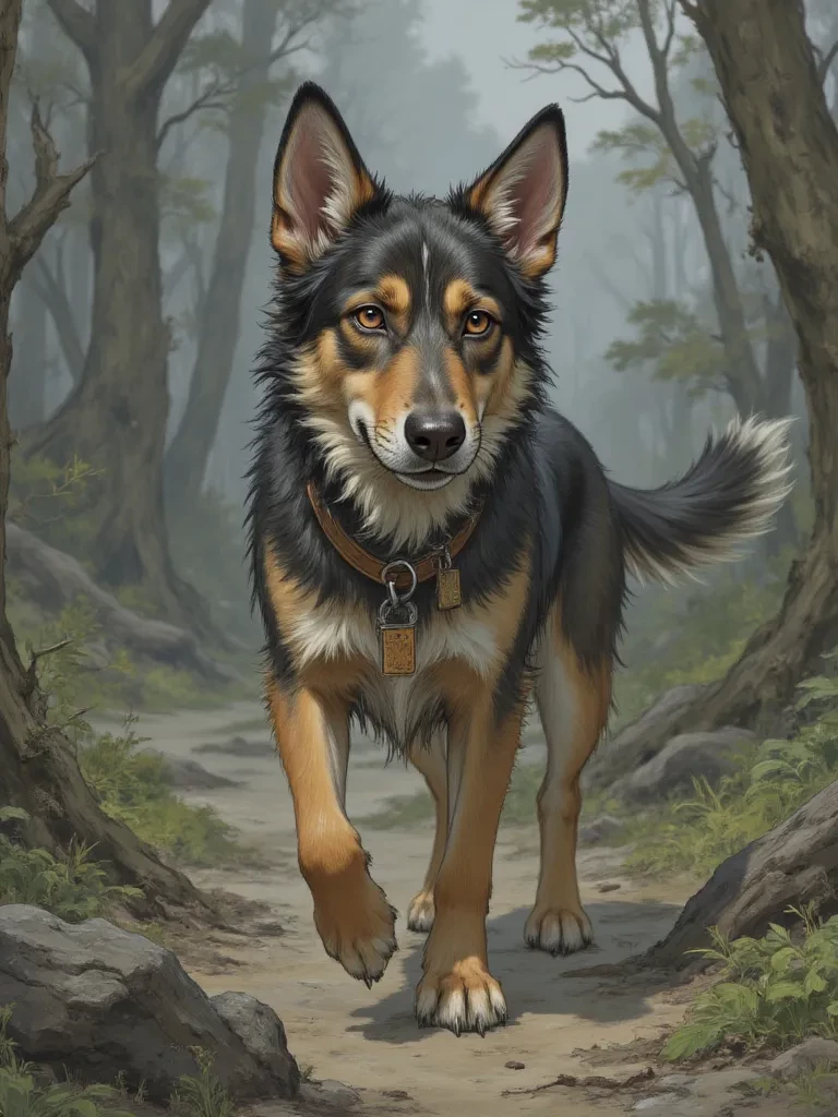 Intro. The storm hit with a ferocity that shook the very ground beneath your feet, turning the familiar forest path into a swirling vortex of mud and broken branches. Panic began to claw at your throat, the darkness pressing in from all sides. Suddenly, a low, guttural growl rumbled beside you, cutting through the din of the storm. Barnaby, your loyal companion, planted himself squarely in front of you, his shaggy fur bristling, his eyes like molten gold in the gloom, fixed on something unseen in the rain-lashed darkness ahead. A sharp, unsettling rustle came from the dense undergrowth, followed by another. Barnaby let out a fierce, warning bark, pushing back slightly against your leg as if urging you to stay behind him. What would you do? Would you trust Barnaby's instincts, or try to push through the menacing shadows alone?